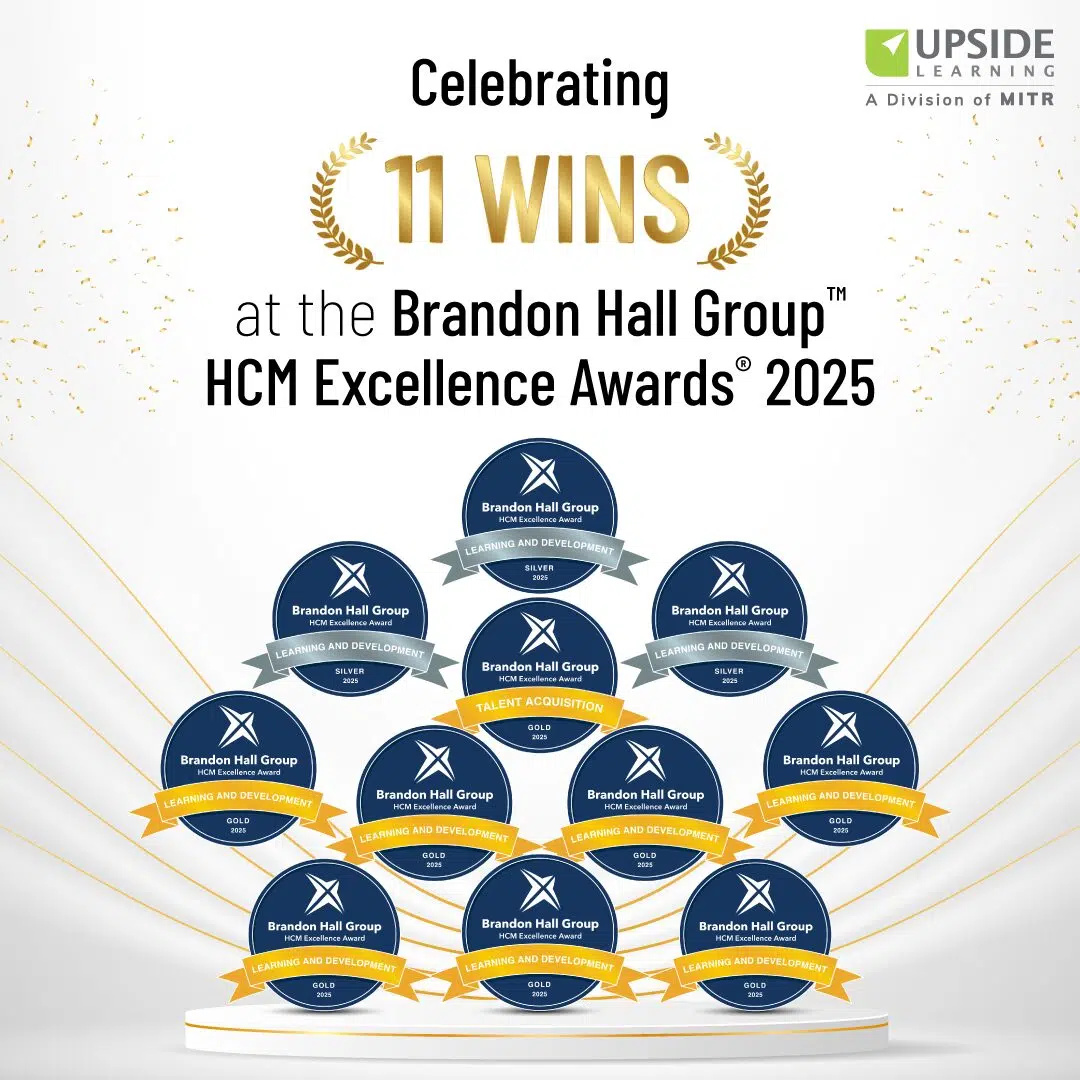 Upside Learning Solutions, a division of Mitr Learning & Media and a leader in innovative learning solutions, won 8 Gold and 3 Silver Brandon Hall Group™ awards for excellence in the Learning and Development and Talent Acquisition categories.